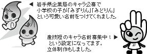 こちらは産技短在学中に制作したもので、左の2体は岩手県企業局のキャラクターとして採用されました。