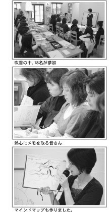 定員10名様で告知しましたが希望者多数につき18名でスタート。 吹雪の中、仙台や盛岡からもご参加いただき、みなさんの熱気ですばらしい時間になりました!!2回目もお楽しみに!
